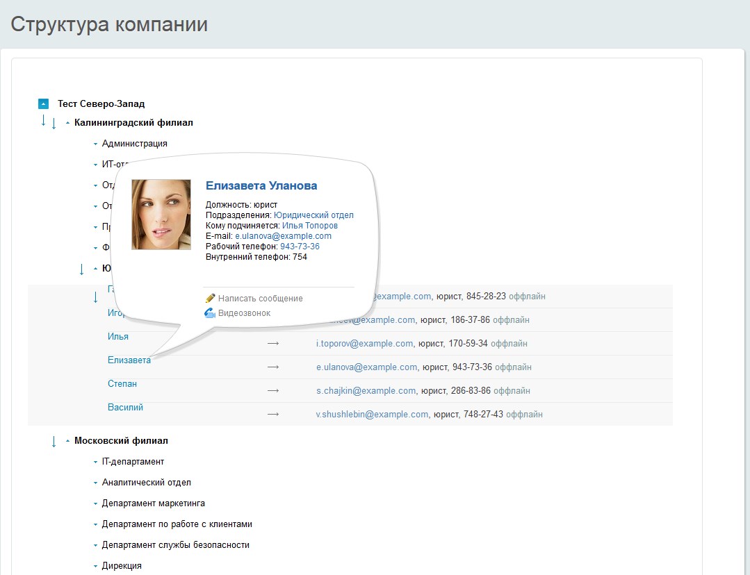 Модуль добавляет новый компонент визуальной структуры компании в виде дерева.