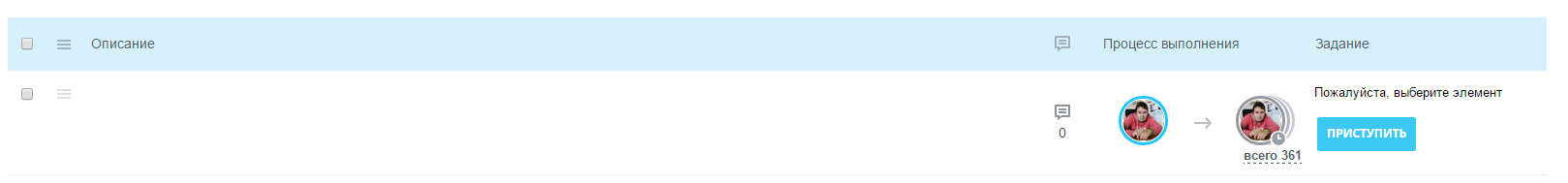 - В задании БП высветится текст задания и перечень элементов этого списка.
