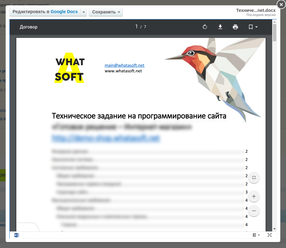 Модуль позволяет просматривать документы следующих форматов: doc, docx, docm, dotm, dotx, xls, xlsx, xlsb, xlsm, ppt, pptx, ppsx, pps, pptm, potm, ppam, potx, ppsm.