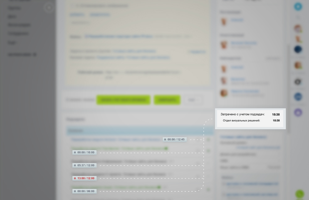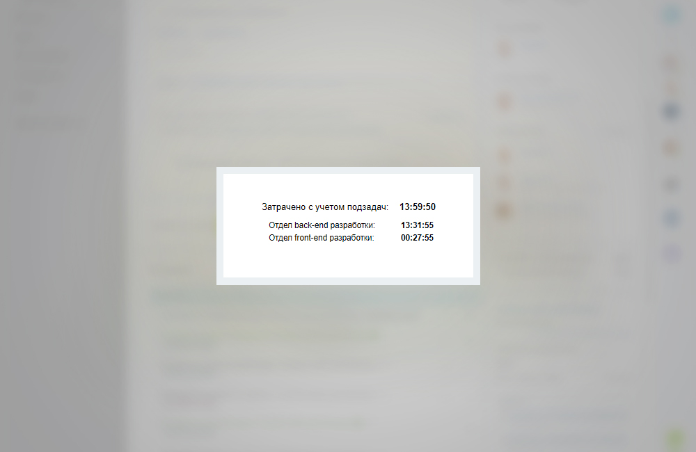 При установке компонента на страницу задачи решение позволяет сразу видеть общее время, затраченное на задачу со всеми подзадачами. Это может быть полезно, если иерархичность задач используется для разбиения задачи на более мелкие подзадачи и необходим общий учёт времени.