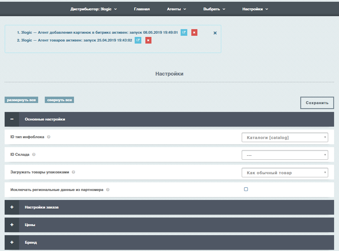 - загрузка структуры дистрибьютора;