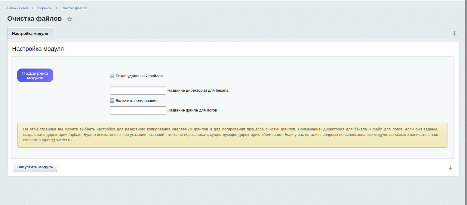 Важное замечание: при выбранных опциях Бекап удаленных файлов и/или Включить логирование, обязательно указывайте Название директории для бекапа и/или Название файла для логов. Директория для бекапа и/или файл для логов создаются в папке /upload. Будьте внимательны при выборе названий, чтобы не перезаписать существующие директорию и/или файл. Доработка решения info@conversite.ru