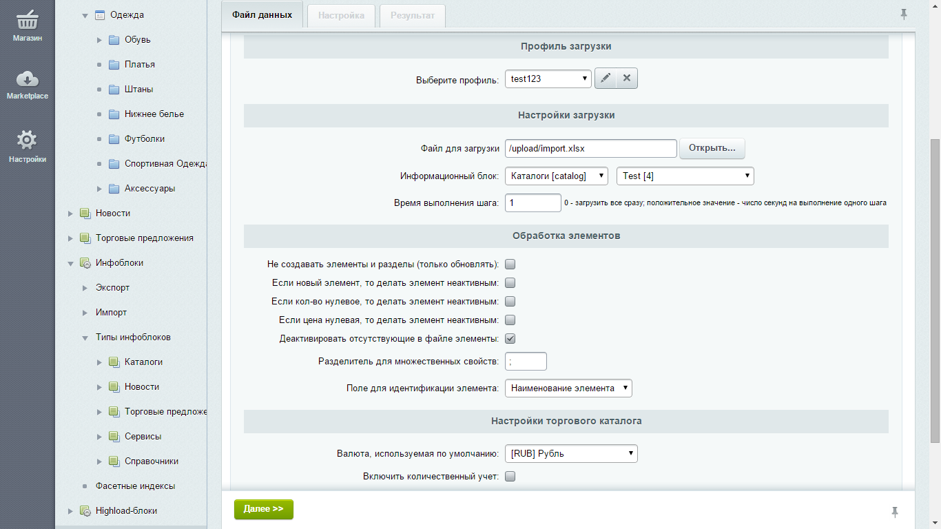 3) Загрузка одного или нескольких листов Excel-файла в один или разные инфоблоки и разделы.