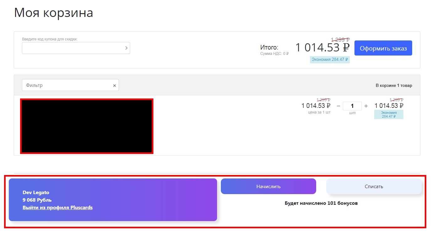 - В корзине пользователя реализован интерфейс для выбора бонусной операции начисления или списания;