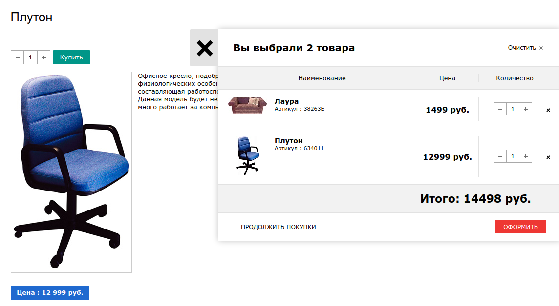 Разработанное решение сделает из обычного сайта с каталогом товаров полноценный интернет-магазин.