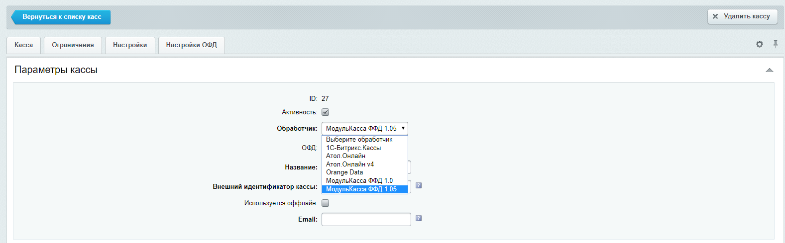 • Название - указать название кассы;