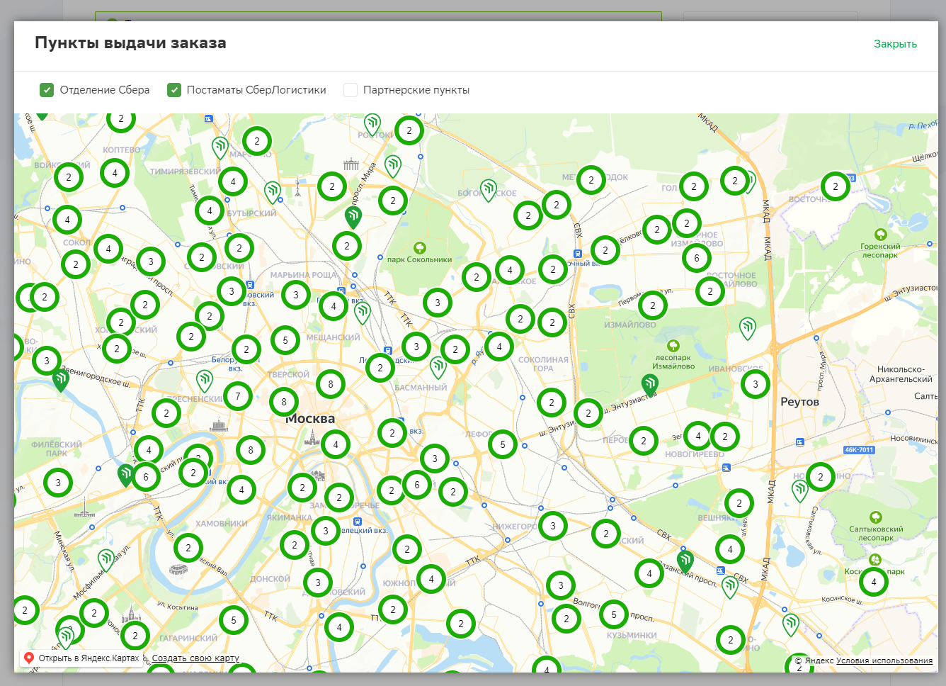 - Отображение карты пунктов выдачи.