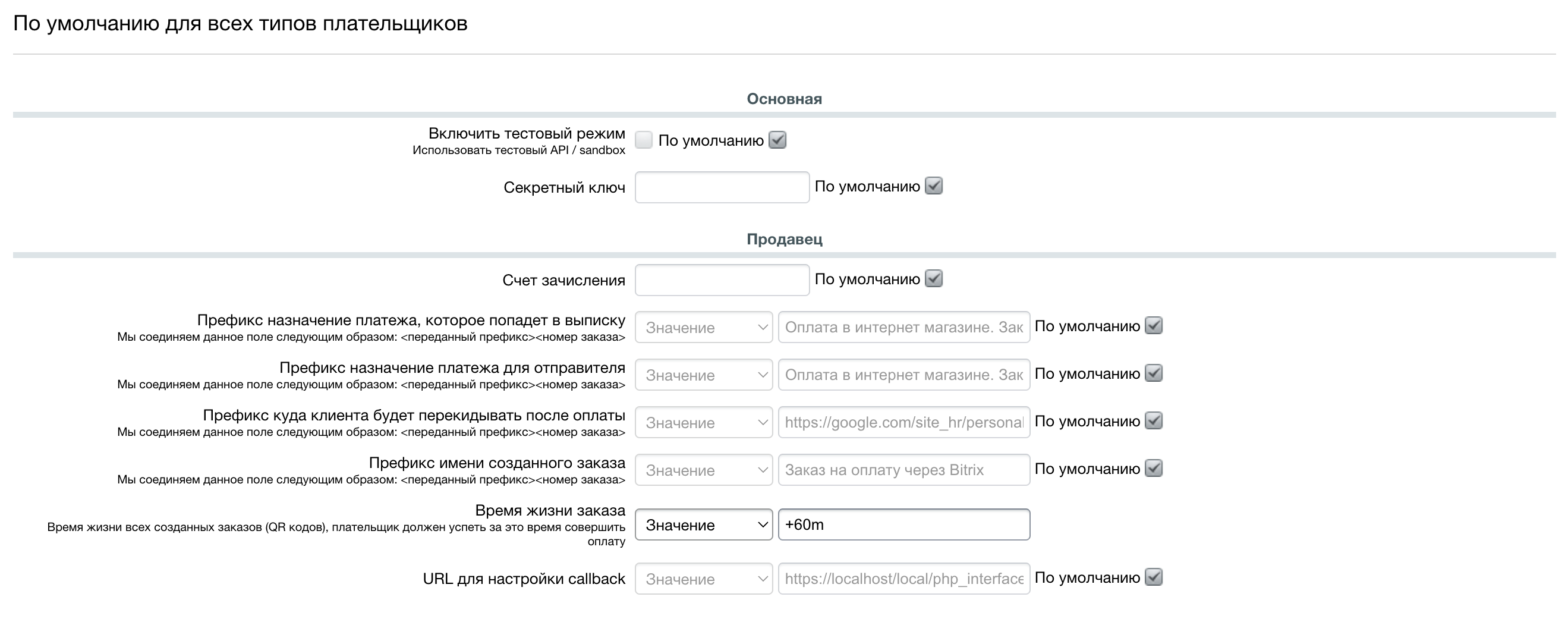 - Вы перейдете на страницу настройки обработчика Платежной системы для заполнения полей: