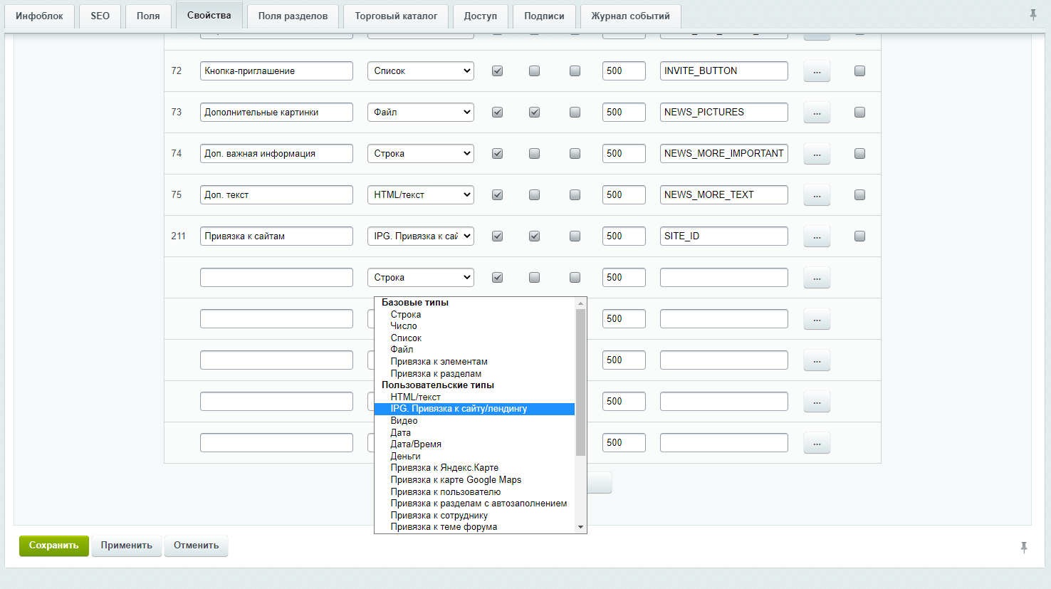 Модуль добавляет новое пользовательское свойство "Привязка к сайту/лендингу". Свойство может быть добавлено к элементам инфоблоков и служит для установки видимости элементов инфоблоков на Сайтах24.