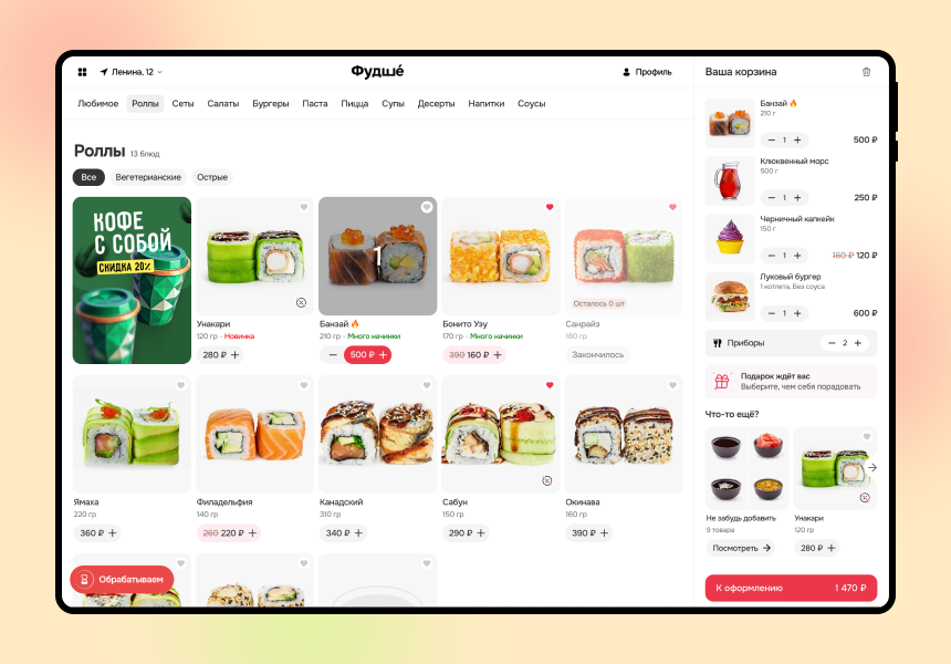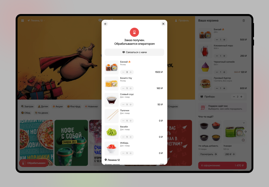 Современное решение для доставки еды, пиццы и суши. Идеально подходит для редакций "Старт" и "Стандарт"