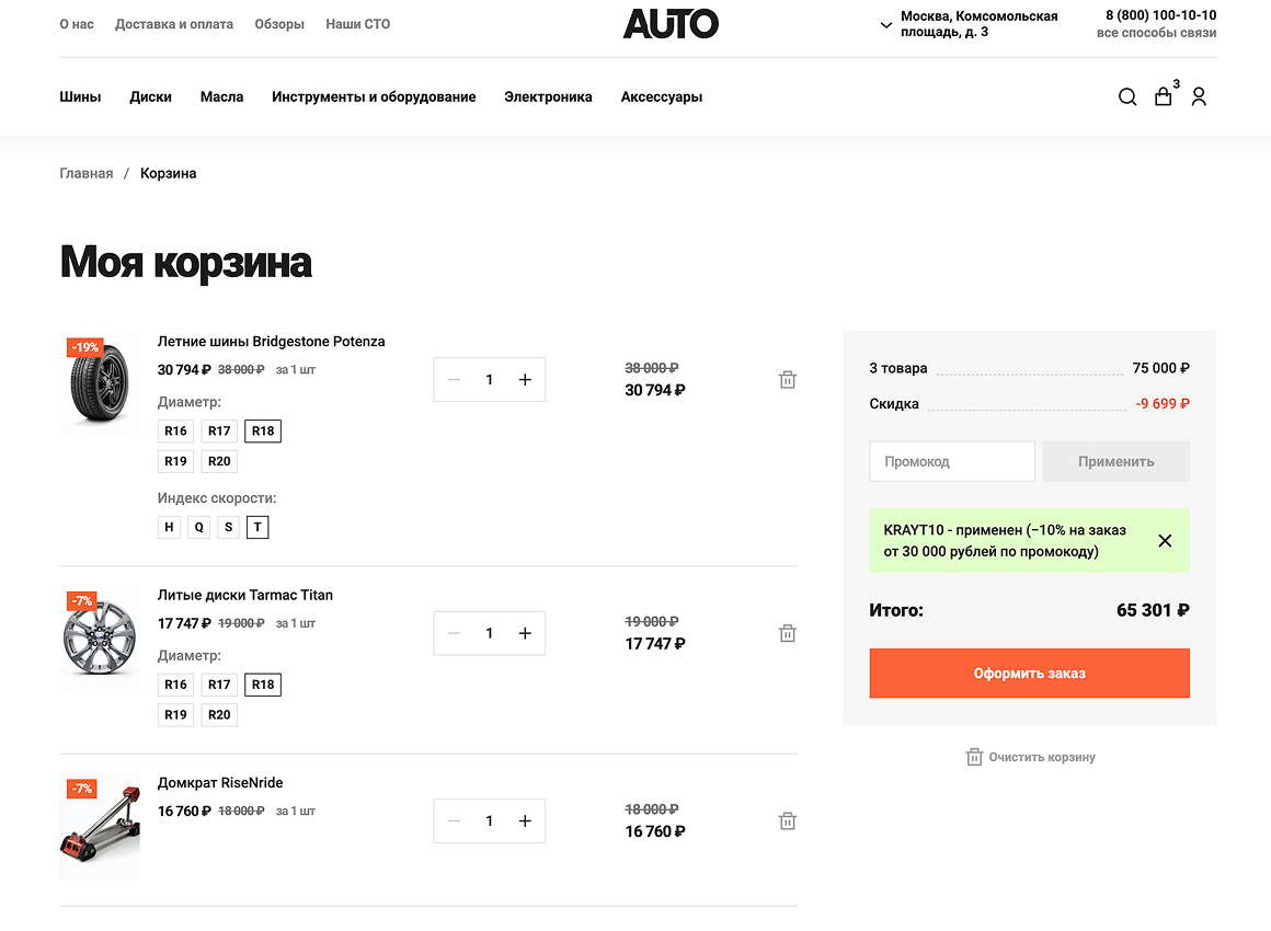 Отраслевой интернет-магазин товаров для авто, запчастей, шин и дисков «Крайт: Auto»