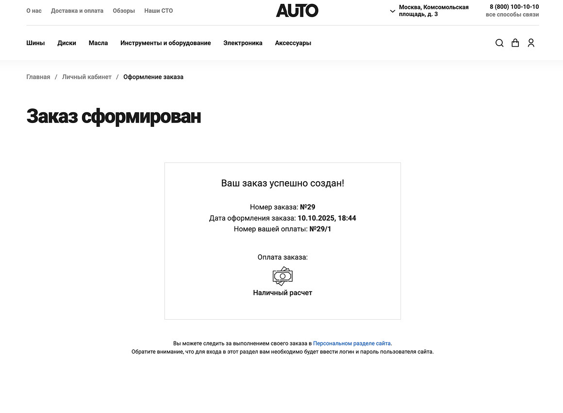- Самовывоз из магазина. Для получения заказа обратитесь к сотруднику в кассовой зоне и назовите номер.