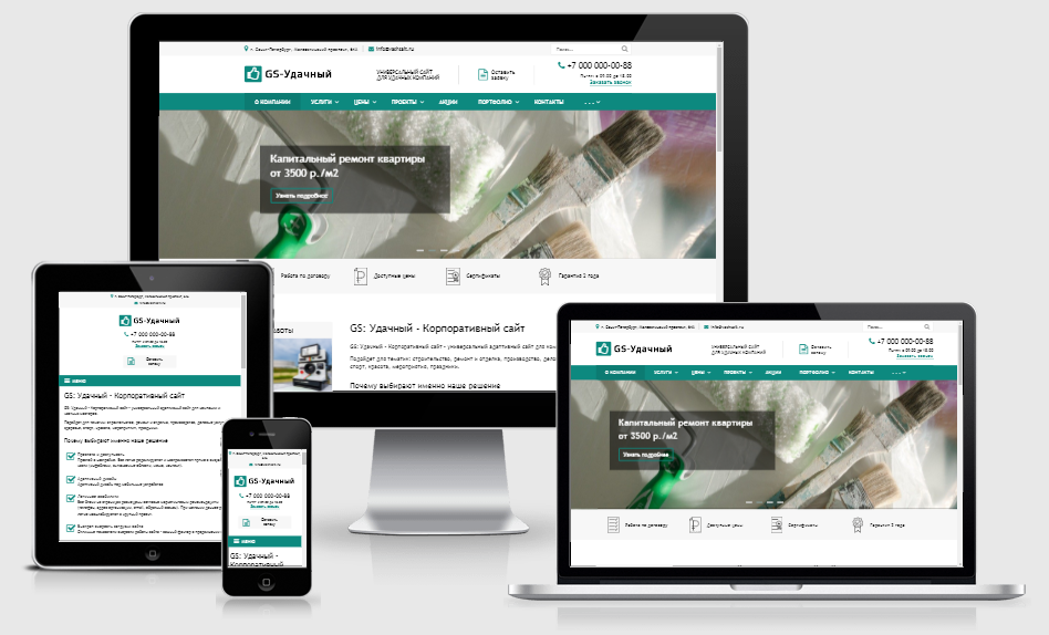 Адаптивный сайт. Мы создали отзывчивый адаптивный сайт, который отлично будет смотреться на всех устройствах: мониторы, ноутбуки, планшеты, смартфоны, и др. гаджеты
