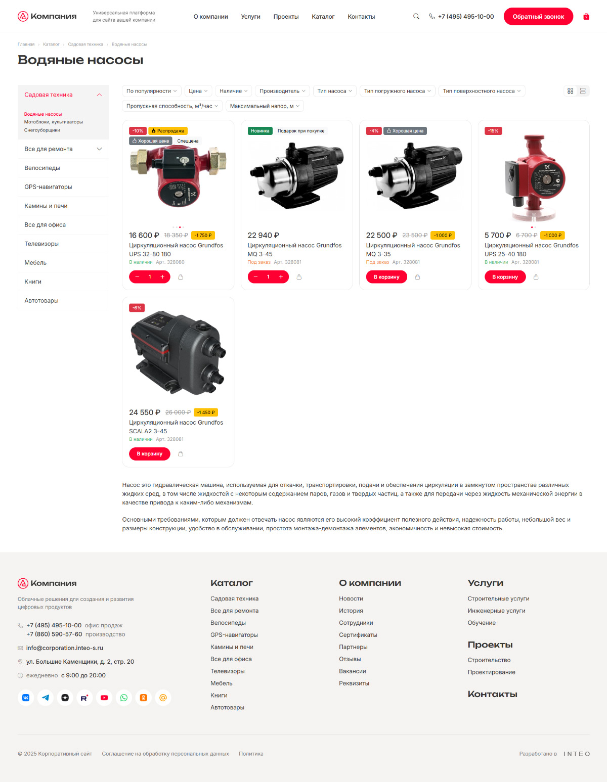 - Каталог товаров с умным фильтром (для всех редакций, начиная с версии Старт)