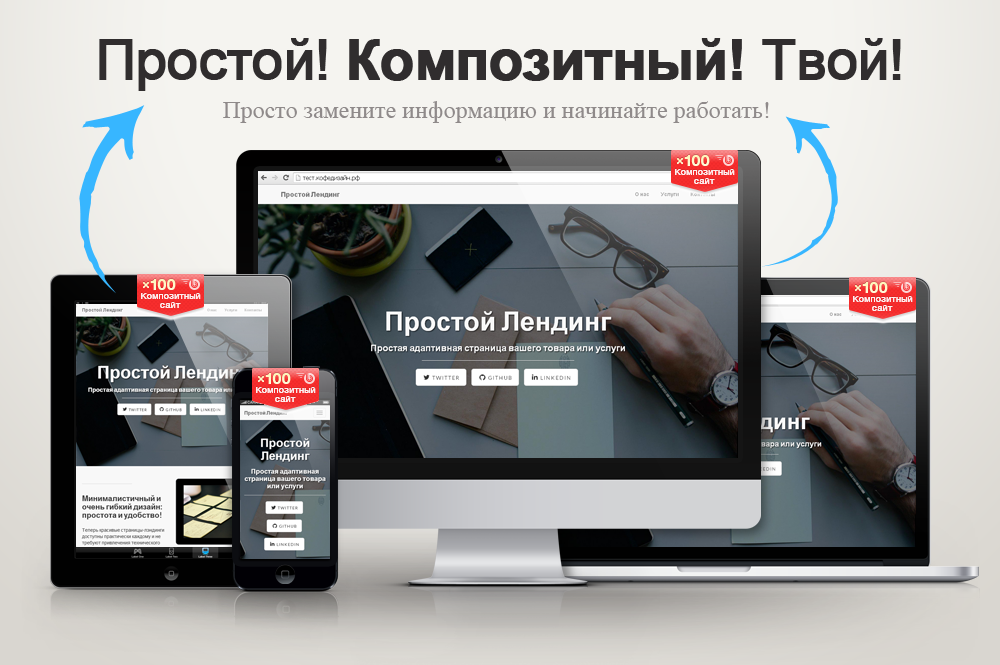 Простой 1-страничный адаптивный лендинг на базе Bootstrap, поддерживающий композитный режим.