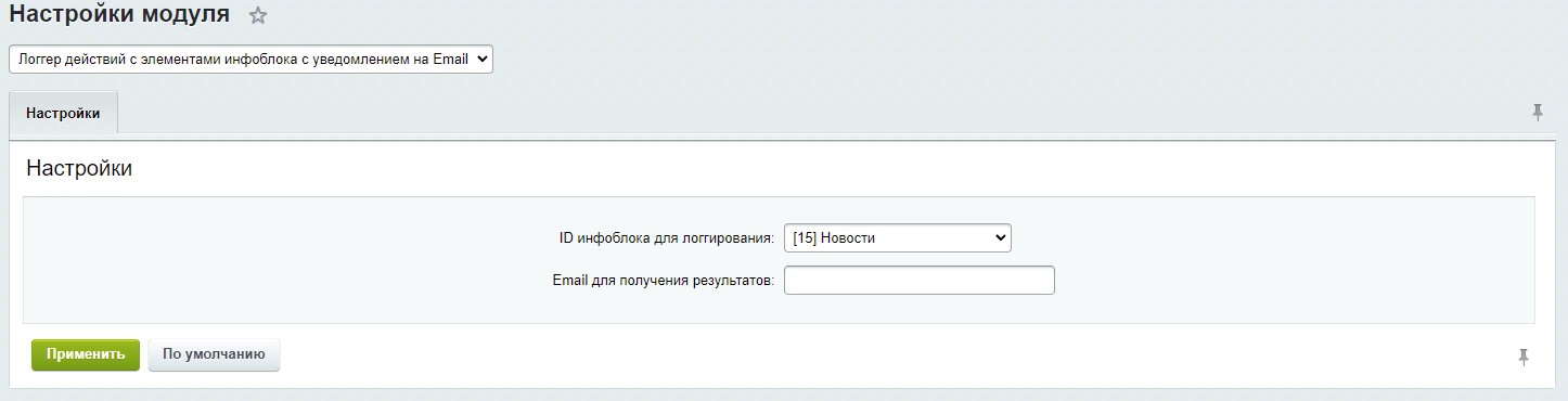 - ID инфоблока для логгирования – выбранный инфоблок, изменения элементов которого будут логироваться;