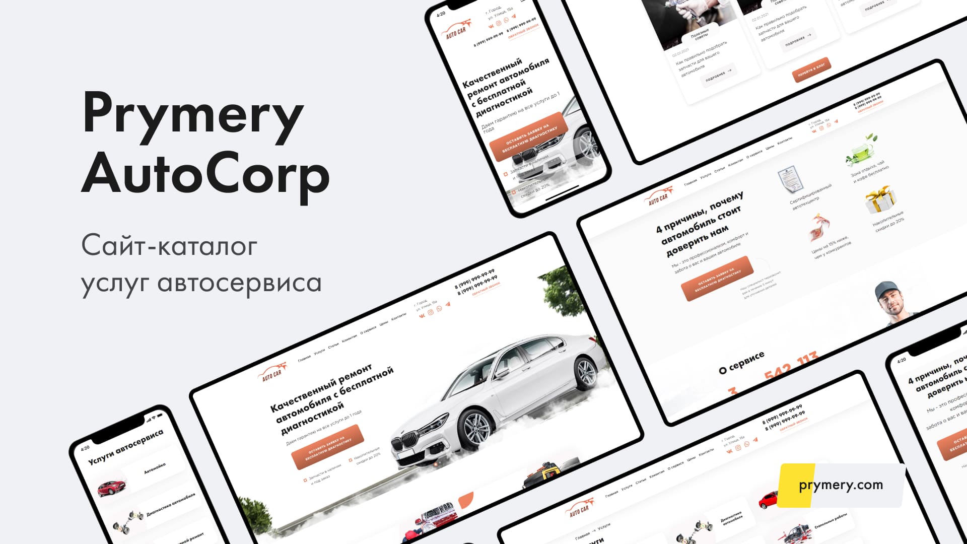 Prymery: AutoCorp– готовое решение сайта-каталога услуг для автосервиса. Легкий шаблон со всеми необходимыми функциями для автосервиса.