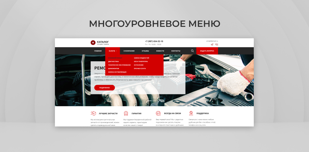 https://team-b.ru/Универсальный корпоративный сайт с каталогом услуг. Современный сайт со всем нужным функционалом идеально подойдет для компании, работающей в сфере авторемонта: