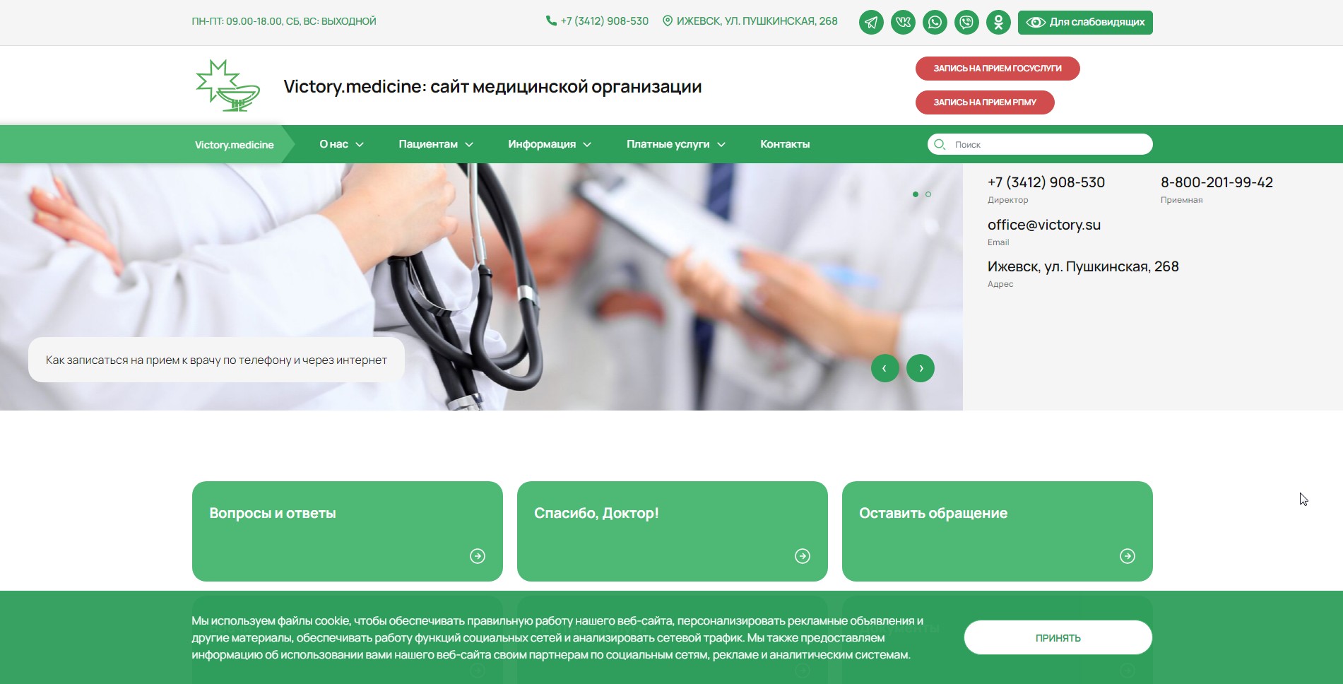 - наличие всех необходимых разделов и страниц, которые должны быть на сайте бюджетной медицинской организации;