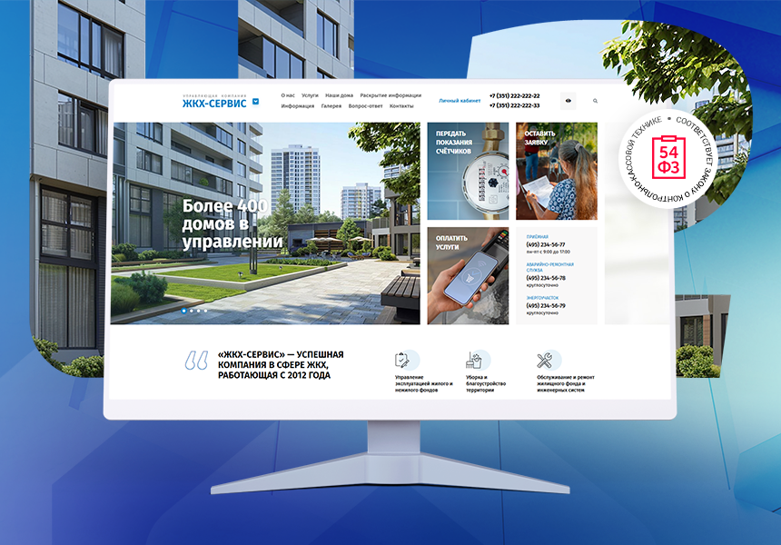 Адаптивный и функциональный шаблон для сайта УК ЖКХ с ЛК и мобильным приложением.