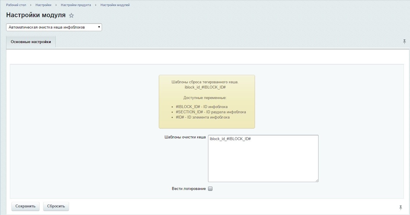 Настройка через Настройка - Настройка модулей - Автоматическая очистка кеша инфоблоков