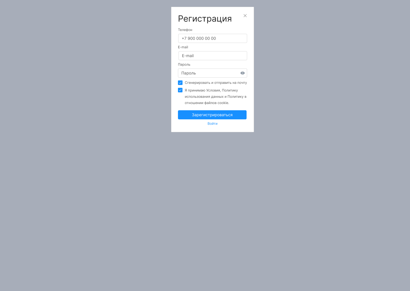 Модуль “Авторизация в модальном окне” - компонент для регистрации и авторизации пользователя на сайте в модальном окне. Адаптирован под мобильную версию.