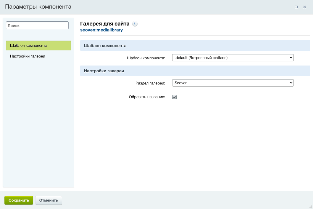Компонент позволяет вывести изображения из раздела медиабиблиотеки.