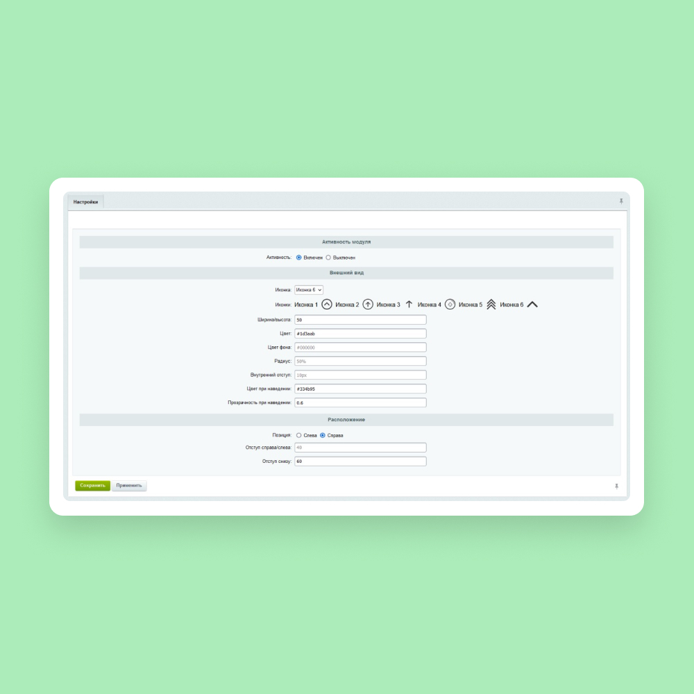 После успешной установки решения перейдите в раздел "Настройки → Настройки модулей → Кнопка Наверх".
