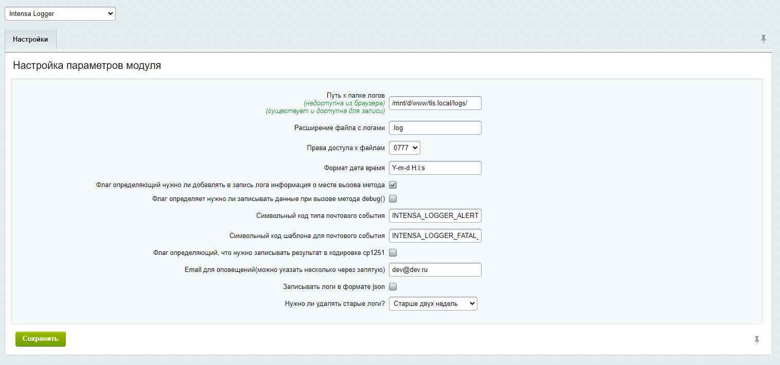 Примеры использования можно найти в репозитории проекта https://github.com/intensa/intensa.logger По техническим вопросам пишите в телеграм https://t.me/ishishkin