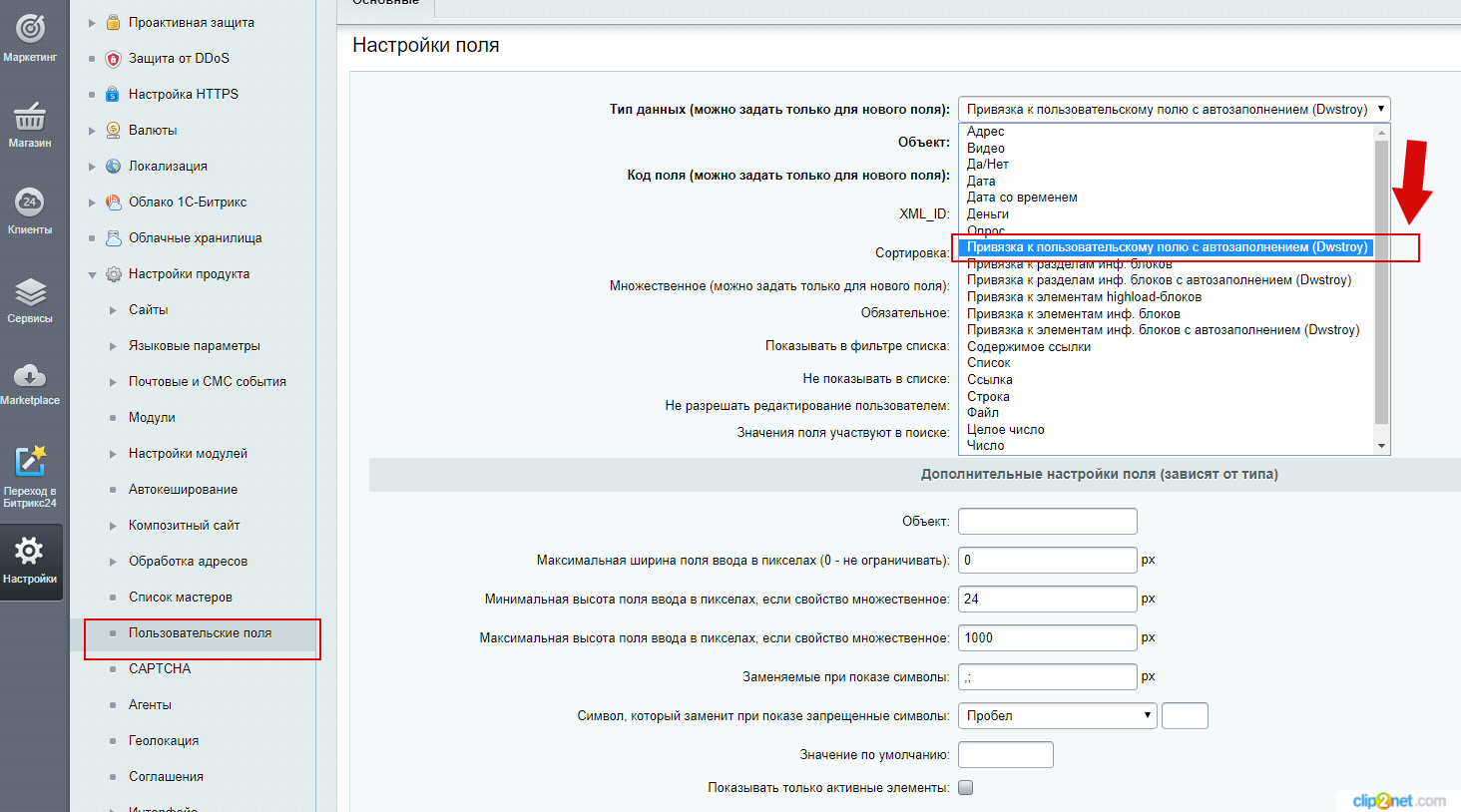 Модуль пользовательское поле - Привязка к пользовательскому полю с автозаполнением