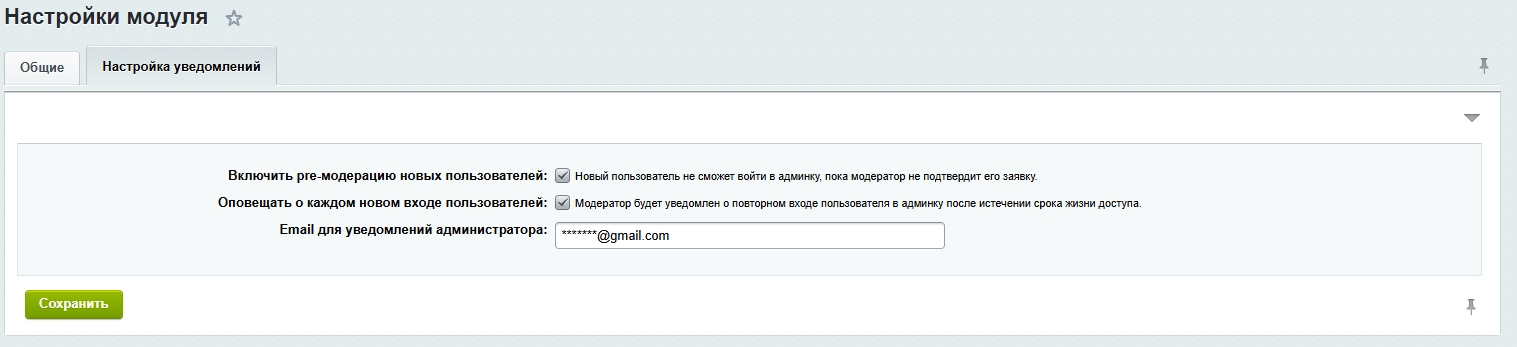 7. Если необходимо получать уведомления о выдаче доступа пользователям, установите эти настройки на вкладке "Настройка уведомлений".