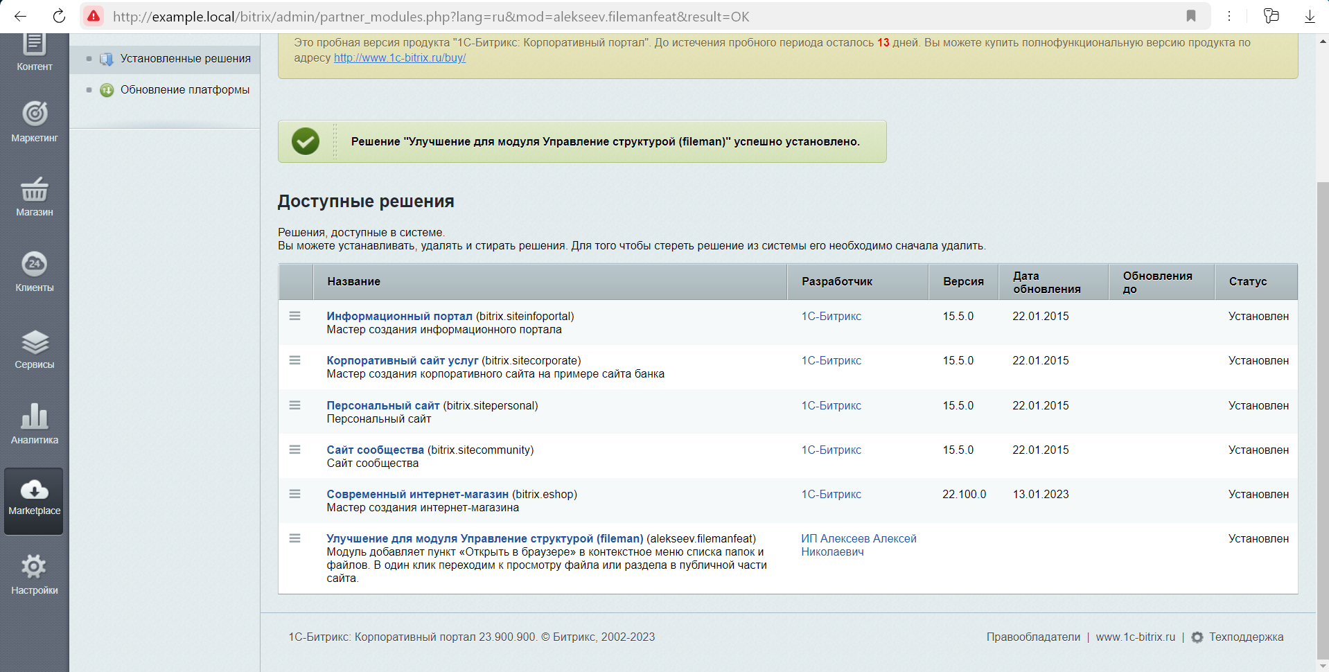 Смотри скриншоты для понимания, какой функционал добавляется к модулю «Управление структурой» (fileman).