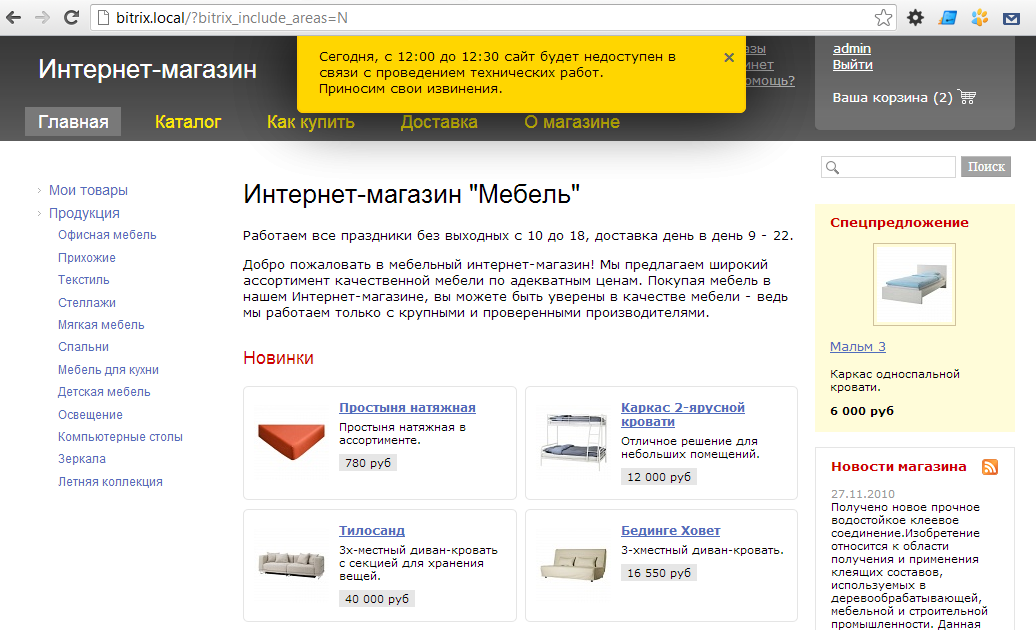 Данный модуль позволит вам уведомить всех, кто находится на вашем сайте. Сообщение будет показываться посетителям на всех страницах до тех пор пока они не закроют его или вы не деактивируете это сообщение.