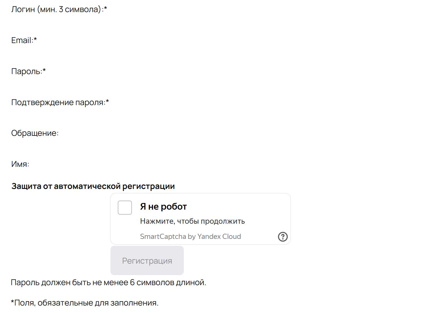 Современное решение для защиты веб-форм от автоматических регистраций и спам-атак. Модуль полностью заменяет устаревшую стандартную капчу Битрикс на интеллектуальную систему Яндекс.Капчи, использующую технологии машинного обучения и анализа поведения пользователей.