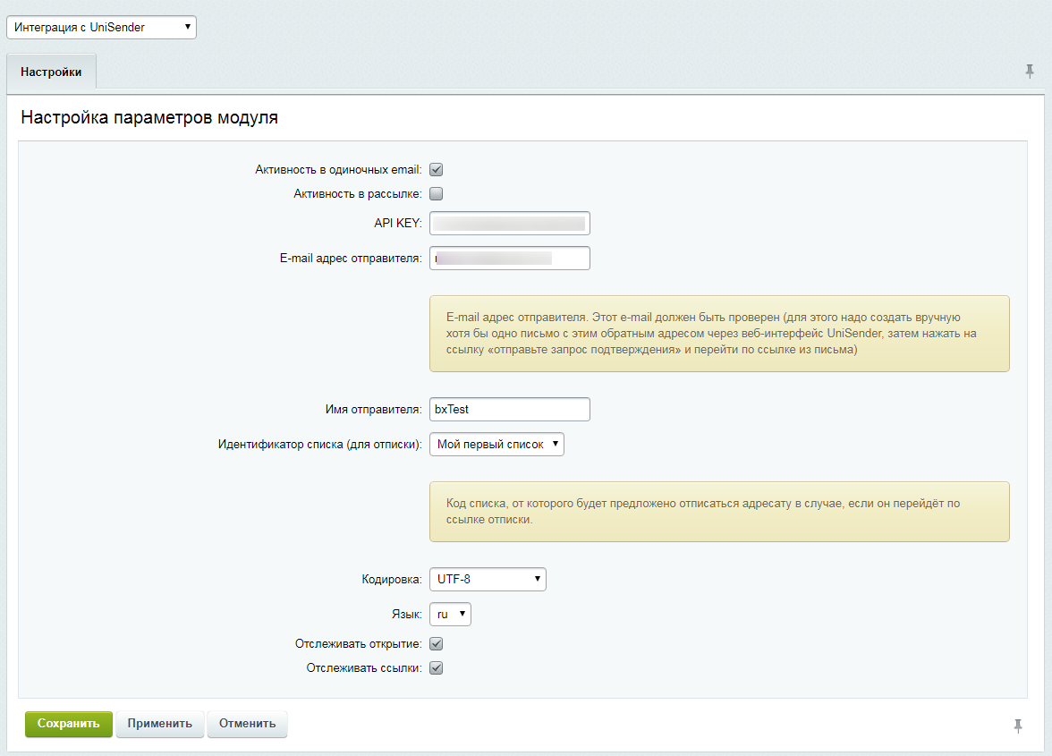 Модуль позволяет автоматически отправлять письма через сервис UniSender