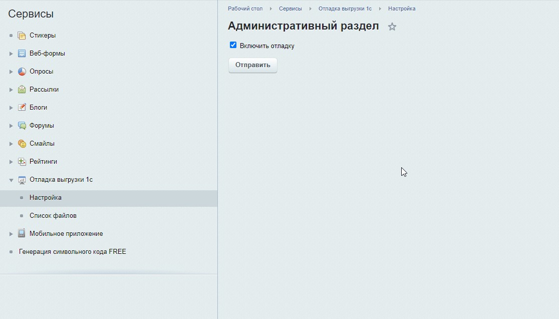 Решение позволяет включать и выключать опцию сохранения файлов выгрузки из 1С на специальной странице настроек в административном разделе, а также предоставляет функционал поиска информации по сохраненным файлам обмена (каталоги /upload/1c_catalog*).