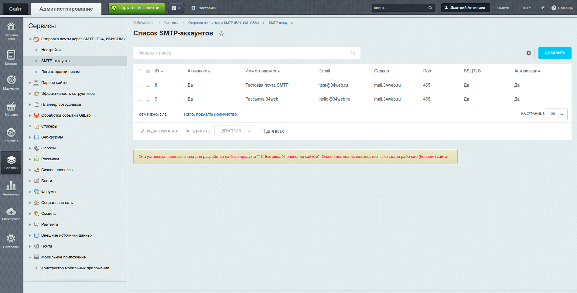 Отправка почты через внешний SMTP (Коробка Битрикс24, Интернет магазин + СRM)