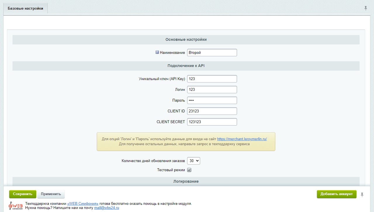 - Данные для подключения к API Леруа Мерлен;