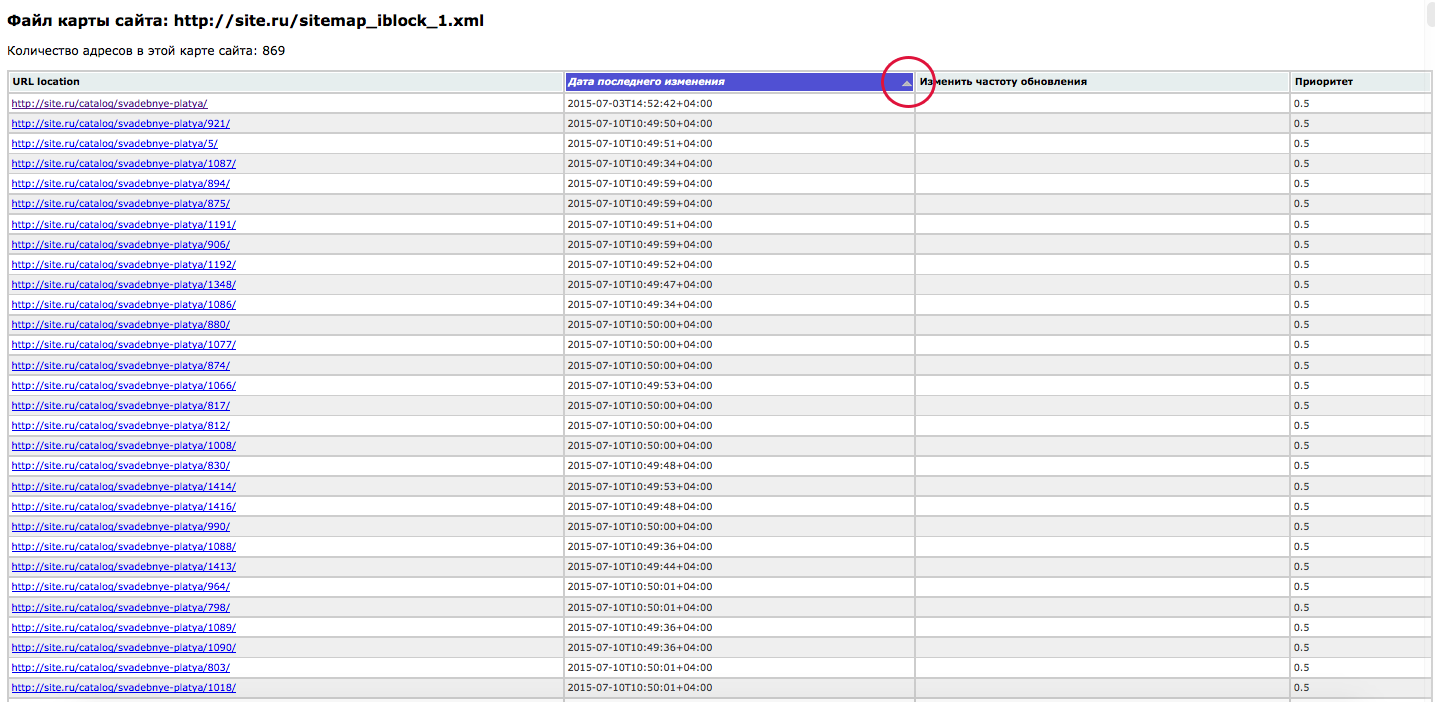 Для того, чтобы облегчить участь людей производящих поиск и устранение дубликатов, предлагаем воспользоваться модулем который оформляет карту сайта sitemap.xml в виде сортируемой по параметрам таблицы.
