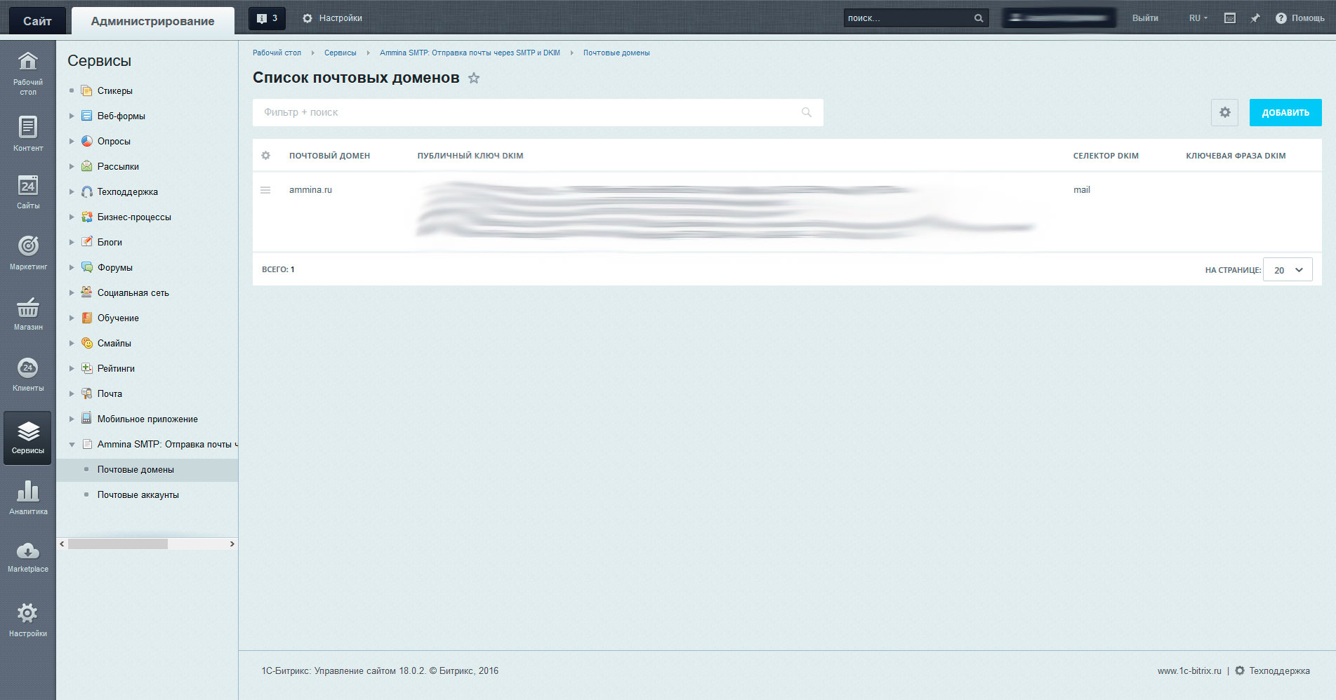 Ammina: Отправка почты через SMTP и DKIM подпись (Битрикс, коробка Битрикс24, Интернет-магазин+CRM)