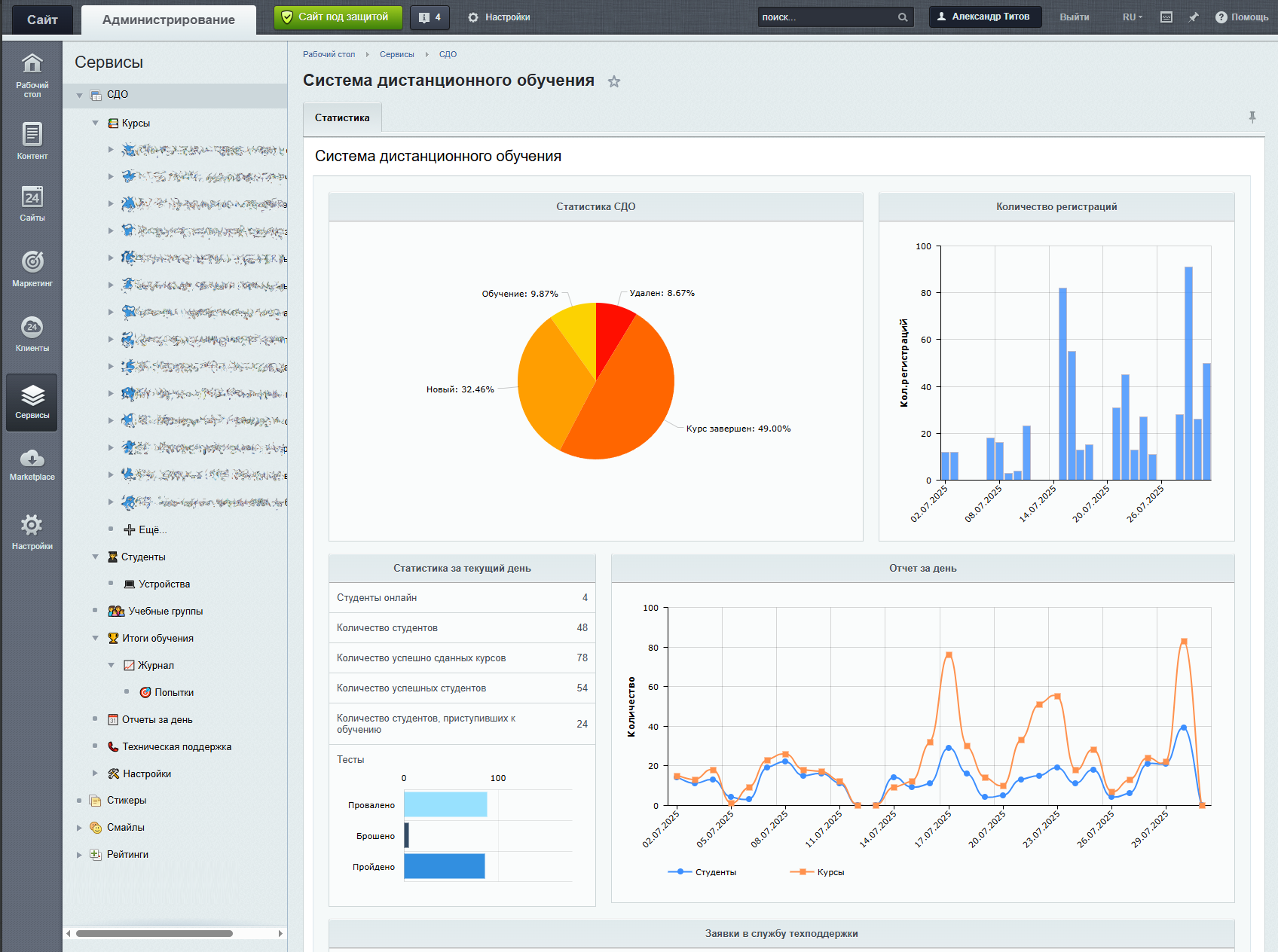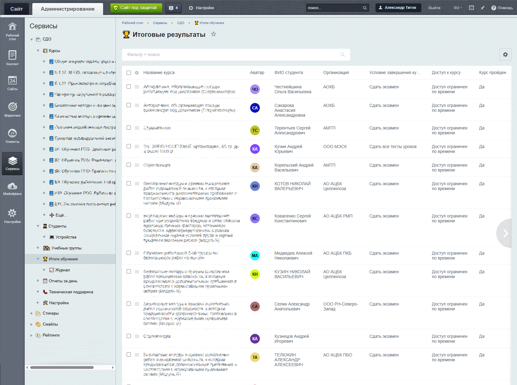 <p>Система дистанционного обучения (СДО) — это мощное и гибкое решение для организации образовательного процесса в онлайн-формате. Она объединяет в себе инструменты управления курсами, тестированием, аналитикой и доступом, обеспечивая удобную и эффективную среду обучения.</p><p><b>Основные возможности</b></p><p></p><ul><li><b>Организация курсов</b>: управление курсами, уроками и тестами, возможность создания сложных учебных планов с ограничением доступа по времени или группе пользователей.<br /><li><b>Тестирование и экзамены</b>: гибкие настройки (ограничение попыток, проходной балл, временные рамки), самопроверка, добавление подсказок, проверка вопросов и многое другое по управлению тестами.<br /><li><b>Гибкое управление доступом</b>: настройка прав на индивидуальном и групповом уровнях.<br /><li><b>Отчеты и аналитика</b>: статистика успеваемости, прогресса и результатов обучения.<br /><li><b>Адаптивный дизайн</b>: удобный доступ с любых устройств благодаря современному интерфейсу.<br /></ul><p></p><p><b>Особенности пользовательского интерфейса</b></p><p></p><ul><li><b>Компонент</b>: может работать как стандартный компонент, интегрируемый в портал.<br /><li><b>PWA-приложение</b>: поддержка прогрессивного веб-приложения (PWA) обеспечивает удобство работы на мобильных и настольных устройствах.<br /></ul><p></p><p><b>Преимущества</b></p><p></p><ul><li><b>Гибкость и масштабируемость</b>: система адаптируется как для небольших групп пользователей, так и для крупных организаций, обеспечивая эффективное управление образовательным процессом.<br /><li><b>Персонализация</b>: широкие возможности настройки позволяют адаптировать систему под конкретные требования и уникальные образовательные сценарии.<br /></ul><p></p><p><b>Целевое применение</b></p><p></p><ul><li>Корпоративное обучение<br /><li>Образовательные учреждения<br /><li>Онлайн-школы и курсы<br /><li>Компании, предоставляющие образовательные услуги<br /></ul><p></p><p>Система обеспечивает полный цикл дистанционного обучения от создания курсов до контроля знаний и анализа результатов, с возможностью гибкой настройки под конкретные задачи организации.</p>