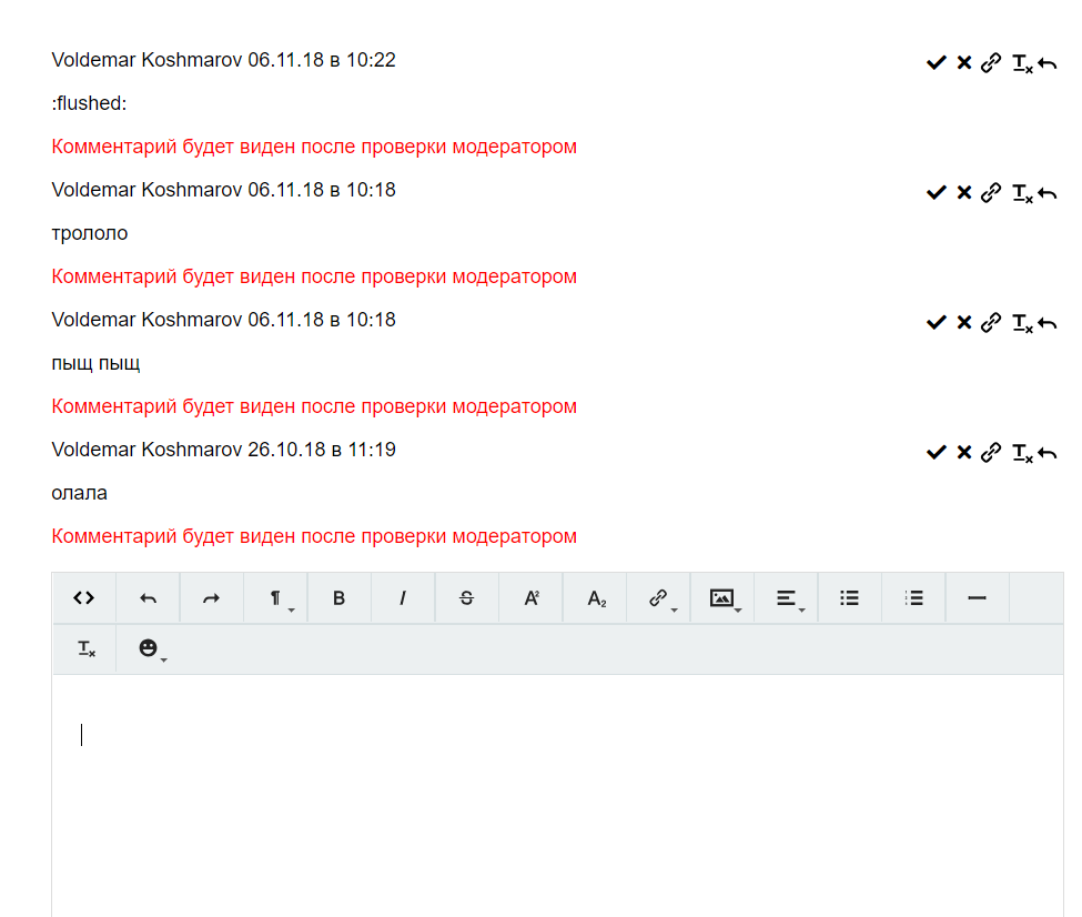 ylab:comments.moderate Компонент для вывода непромодерированных комментариев и работы с ними.