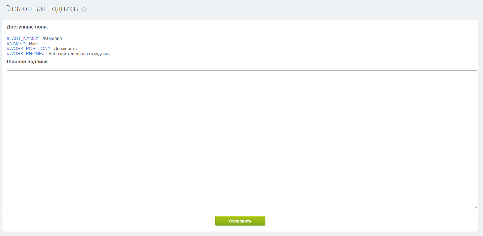 2. На публичной странице настройте шаблон в соответствии с макросами и нажмите кнопку 'Сохранить', чтобы создать или обновить подписи для всех сотрудников