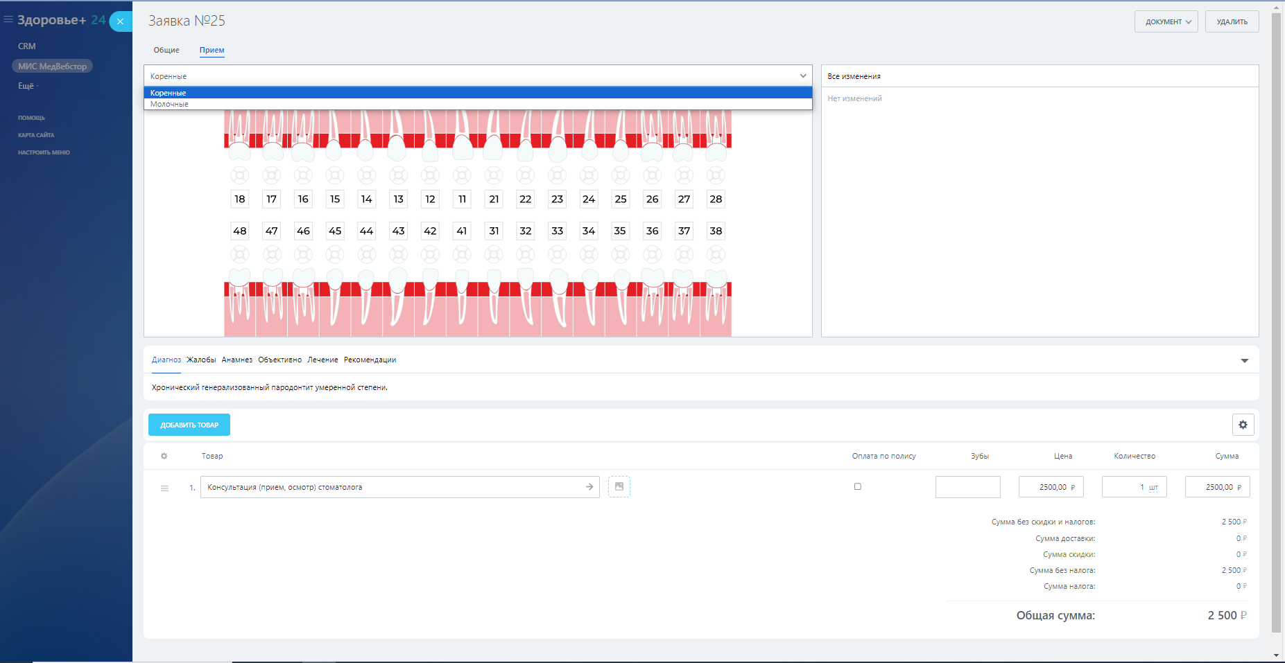 Этот функционал значительно улучшает управление стоматологическими услугами в медицинском учреждении, делая процессы более эффективными и ориентированными на удобство пациентов и персонала.