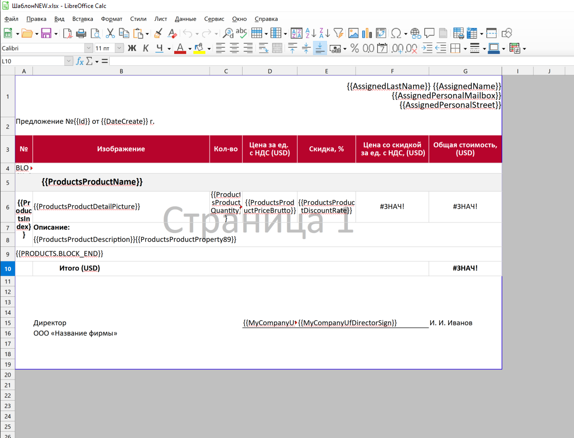 Модуль расширяет стандартный функционал модуля генератор документов в формате excel. Позволяет выгружать документы в формате excel, по предварительно подготовленному шаблону.