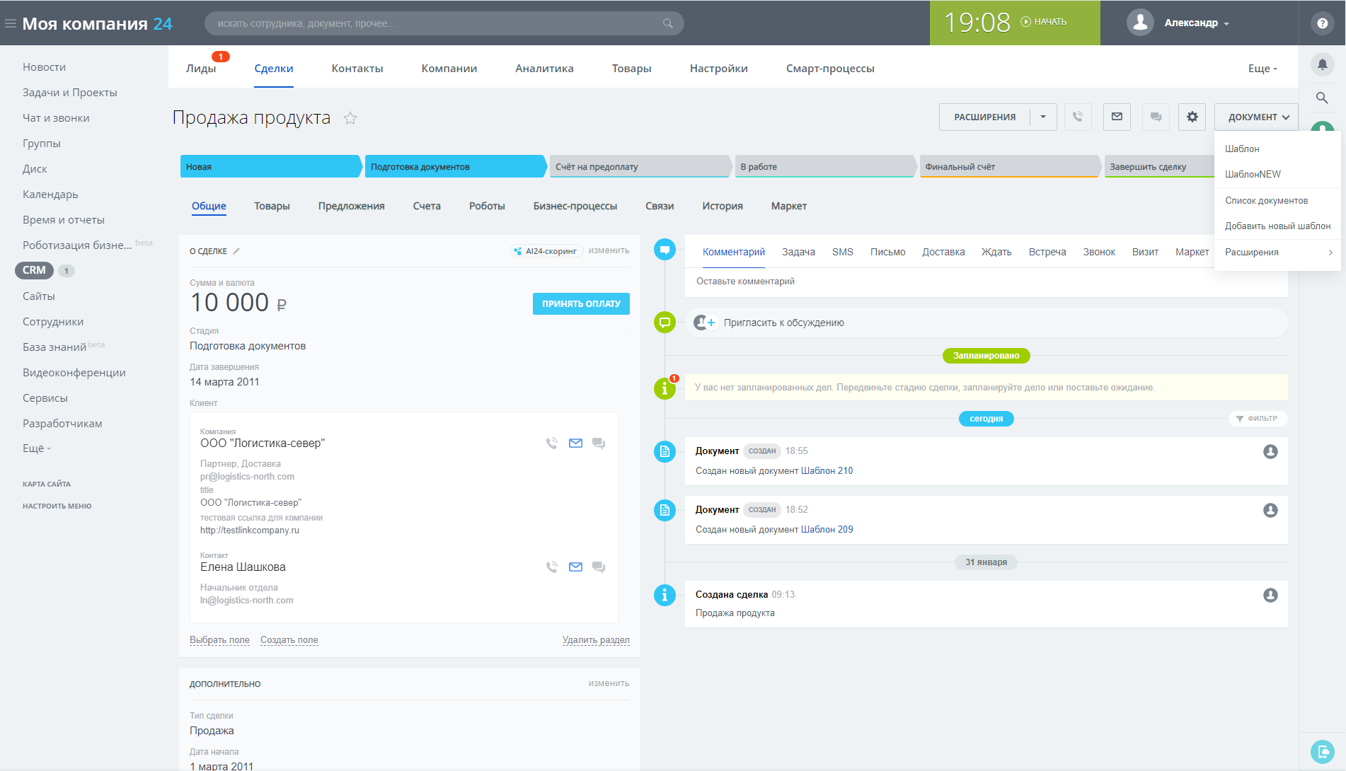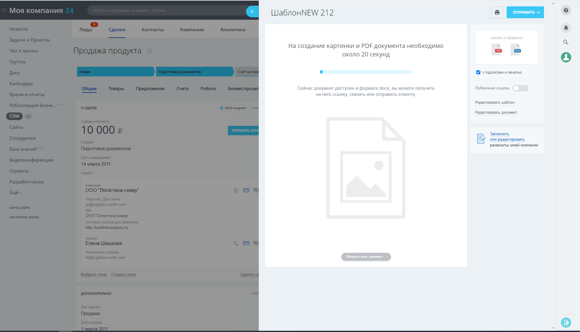 В демонстрации работы модуля на видео показано, как добавить шаблон и выгрузить документ.