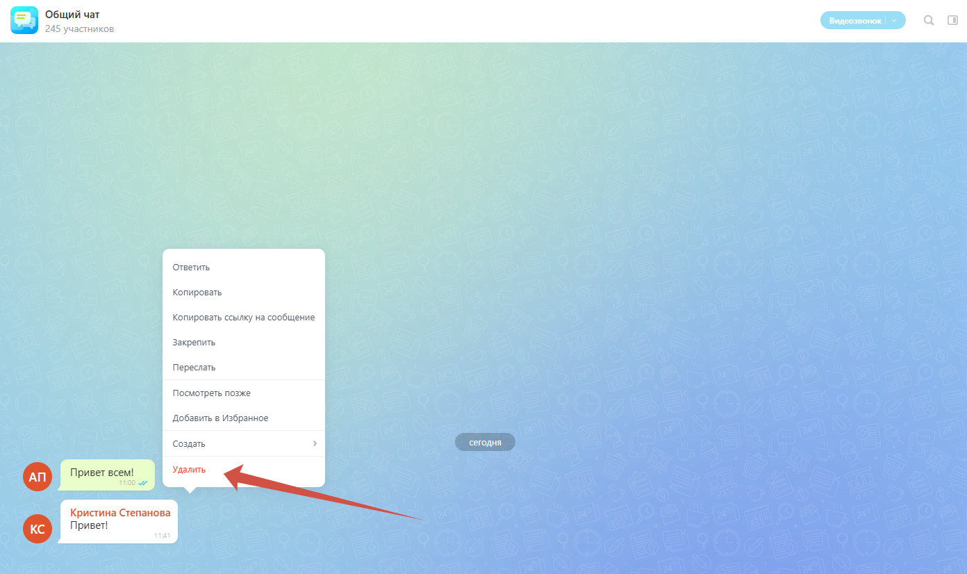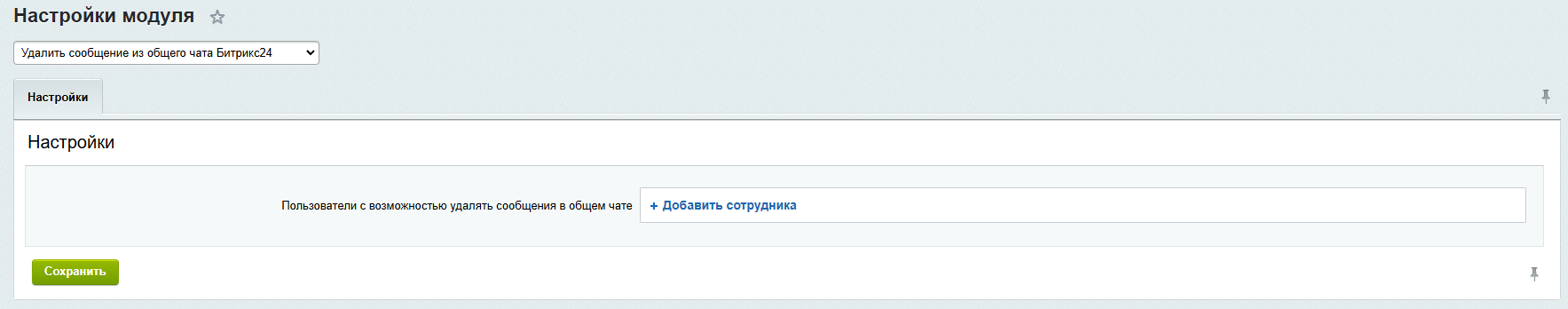 Модуль позволяет выбранным сотрудникам и администраторам удалять сообщения в общем чате.