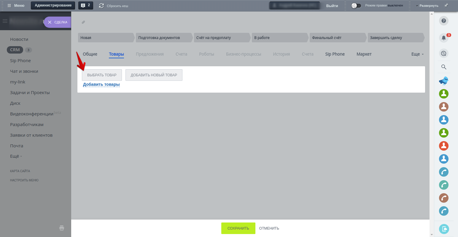 Модуль позволяет выбирать товары не из стандартного попапа для CRM, а из попапа, который используется для инфоблоков, в котором доступны более удобные фильтры