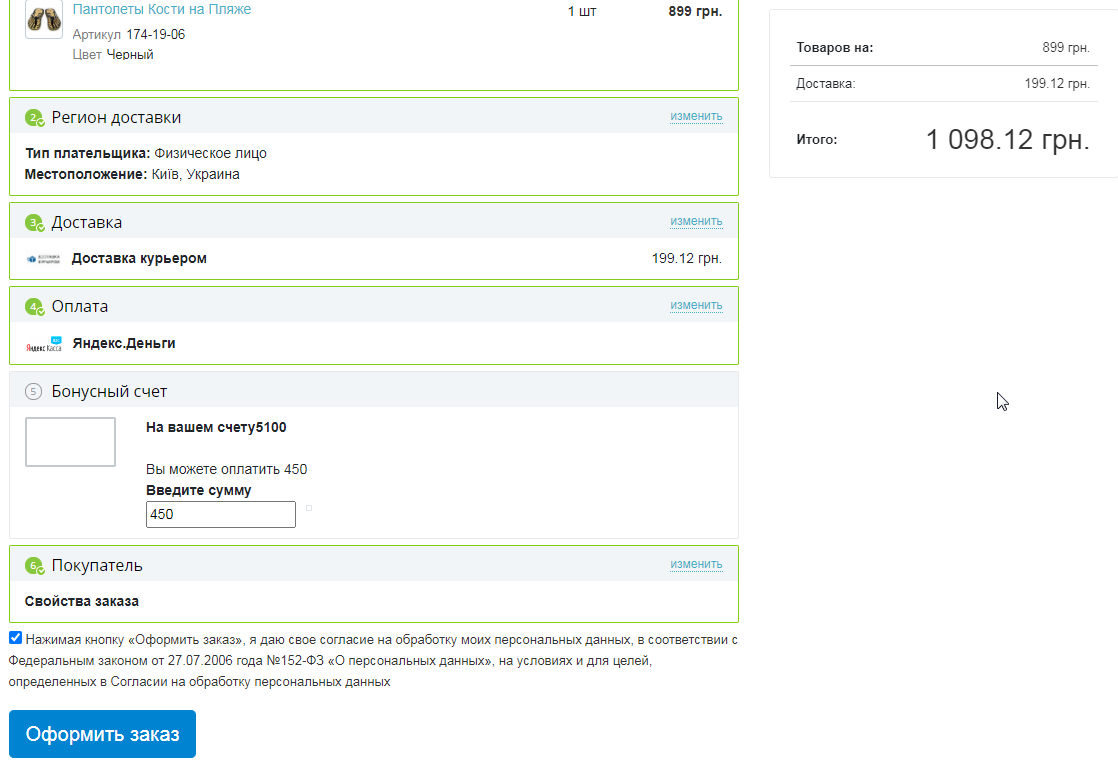- Для корректной записи оплаты бонусами создается платежная система "Бонусный счет".