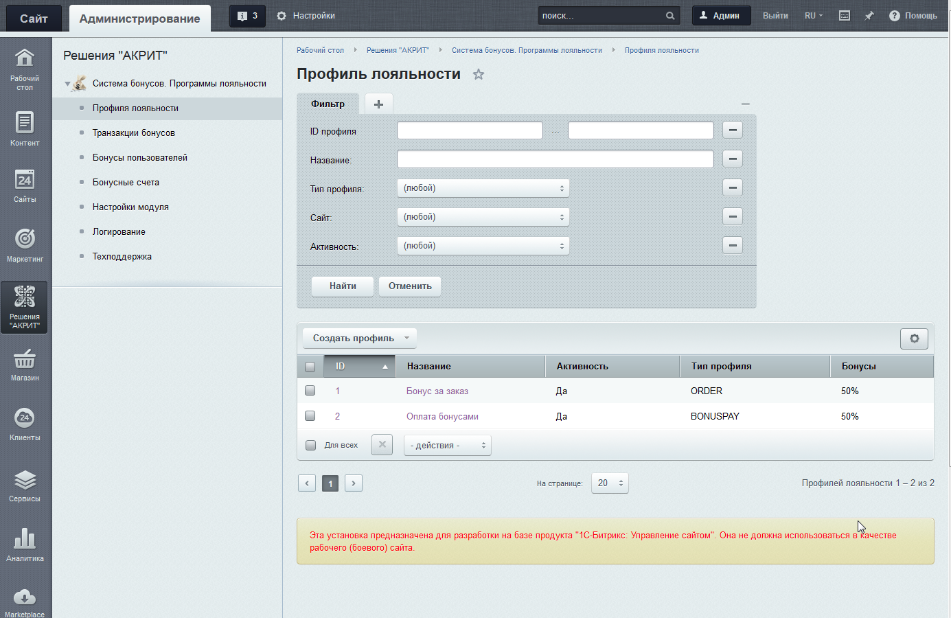 Самый полный модуль по бонусным программам лояльности для интернет-магазинов на платформе 1С-Битрикс.